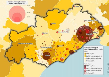 Selon une étude de l’Insee, on trouve la même proportion de personnes immigrées, 11 %, en 2022, comme en 1975 (pourcentage identique pour les P.-O. Et Haute-Garonne. Cette population, née à l’étranger, a doublé comme a doublé la population générale de l’Hérault. Pour le directeur régional de l’Insee, Alexandre Gautier, ces travaux sont déconnectés des élections municipales.